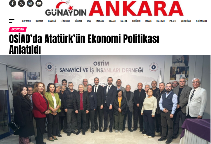 OSİAD tarafından düzenlenen “Atatürk’ün Ekonomi Politikası” semineri basında yer buldu. Basında çıkan haberlerin detayları için: 📌 https://www.gunaydinankara.com/osiadda-ataturkun-ekonomi-politikasi-anlatildi/ Ziyaretçi : 54