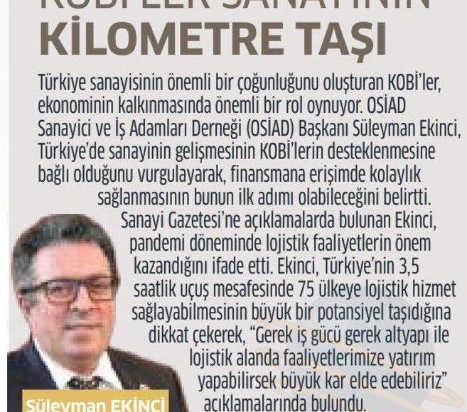 OSIAD Başkanı EKİNCİ: KOBİ’ yaşatmazsan sanayi olmaz