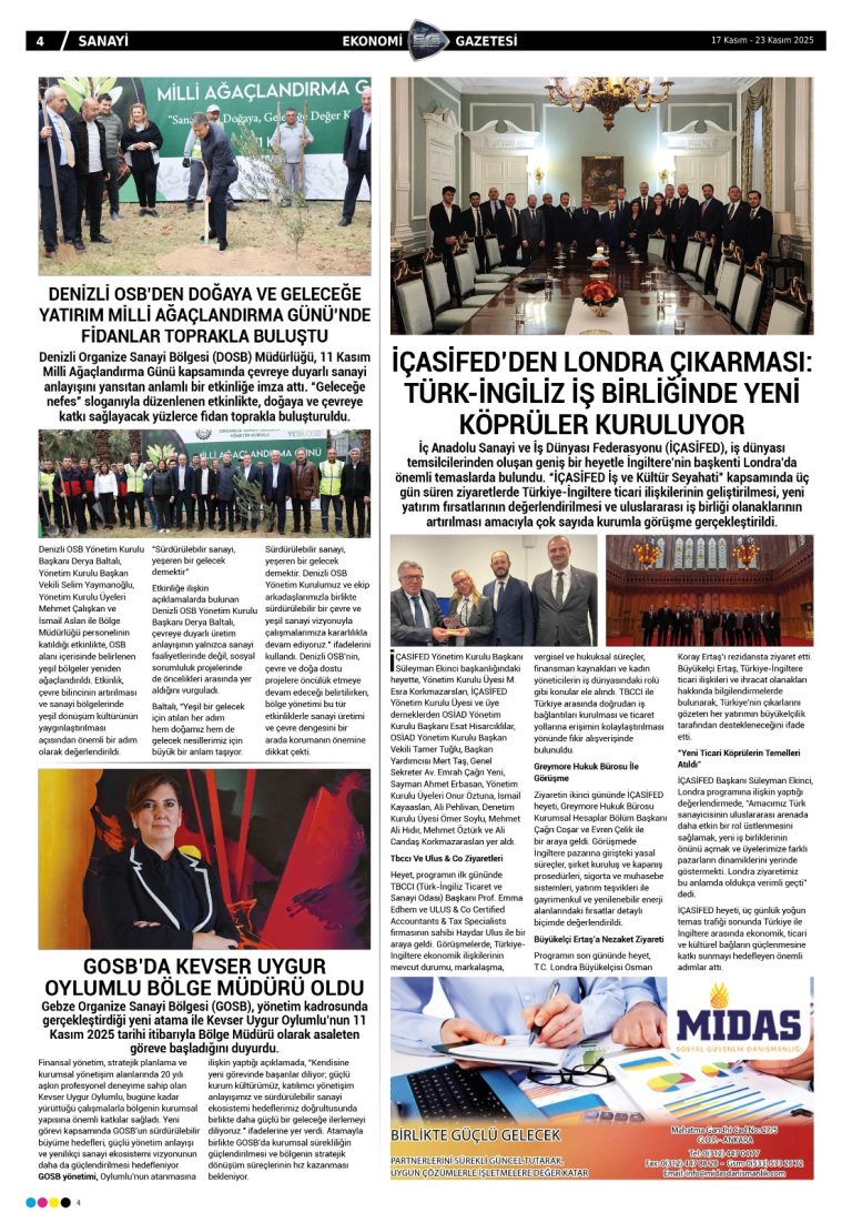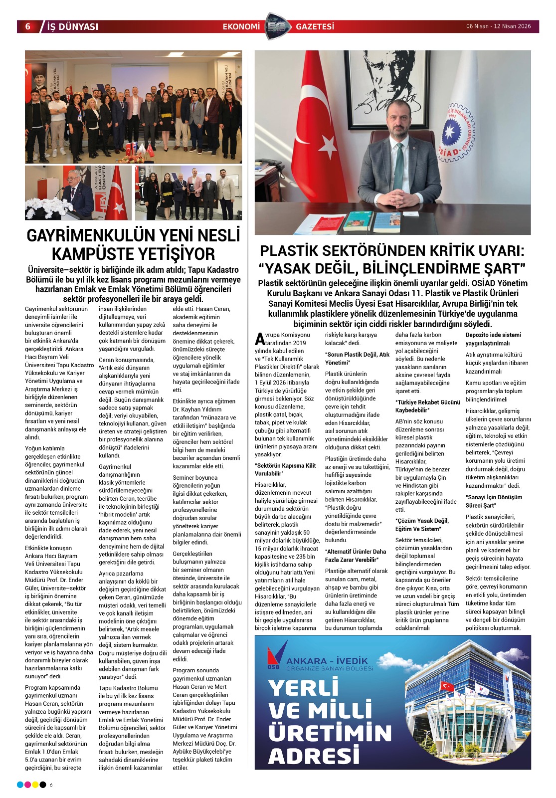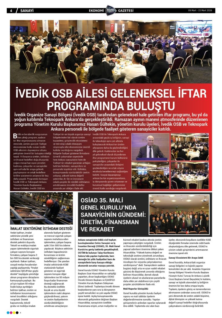 OSİAD’ın çalışmaları, sanayinin nabzını tutan Ekonomi Gazetesinde geniş yer buldu.